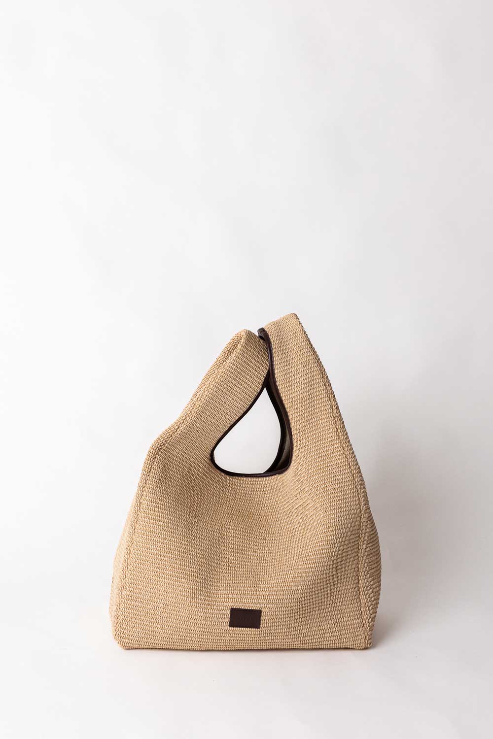 Shopper flat bag has been crafted from Natural woven Raffia finished with cacao details.
