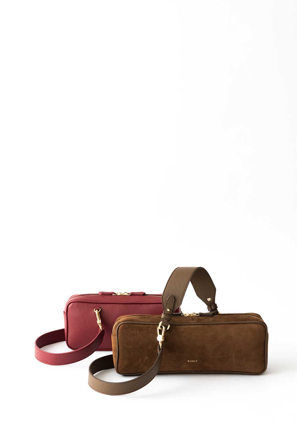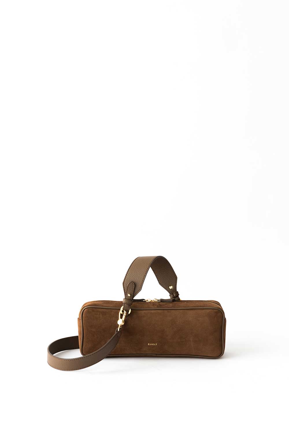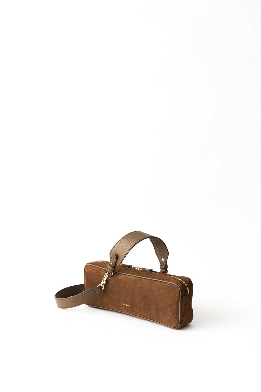 Rectangular shaped bag made of Castagna Suede Leather. Leather shoulder strap.