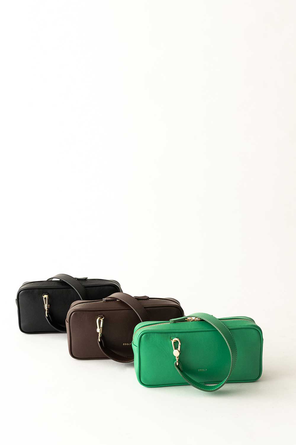 The rectangle bag is a leather baguette with an essential and elegant shape to be worn on various occasions.