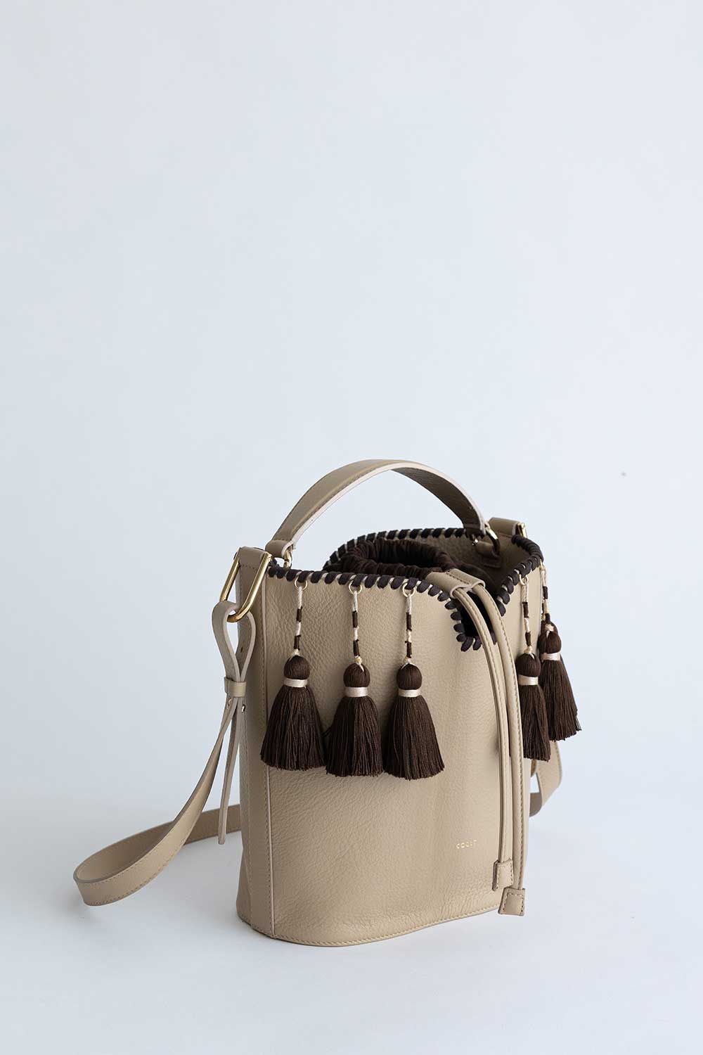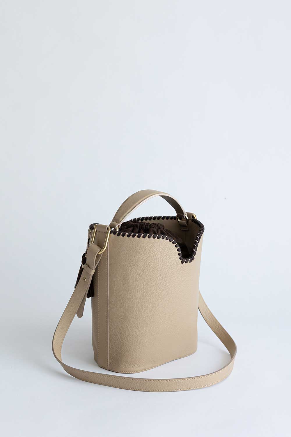 Bucket bag made from Beige Iuta Leather with spacious interior and