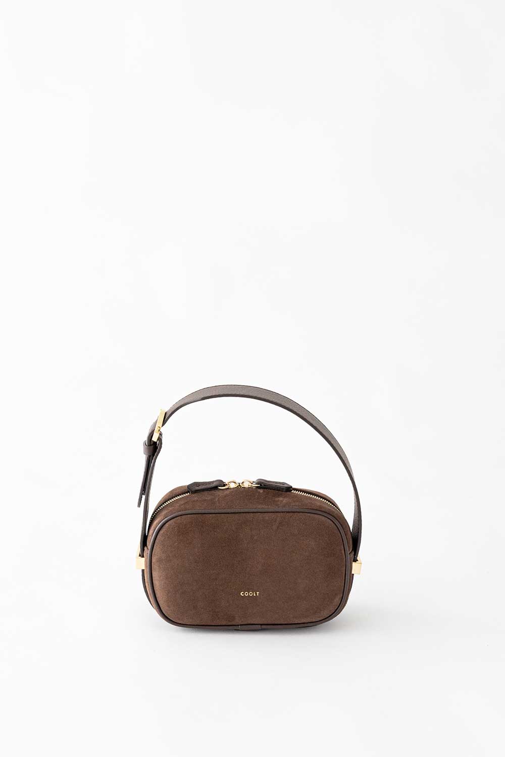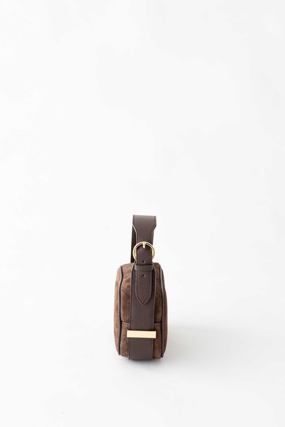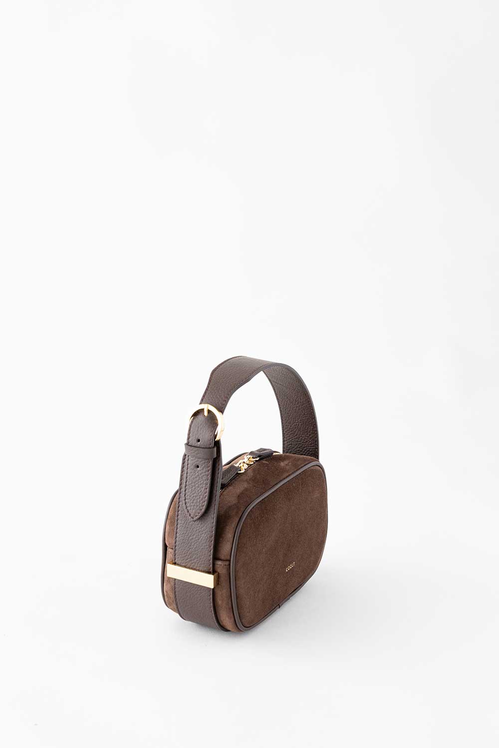 Mini handle bag in Suede Leather Cacao and testa di moro Leather.